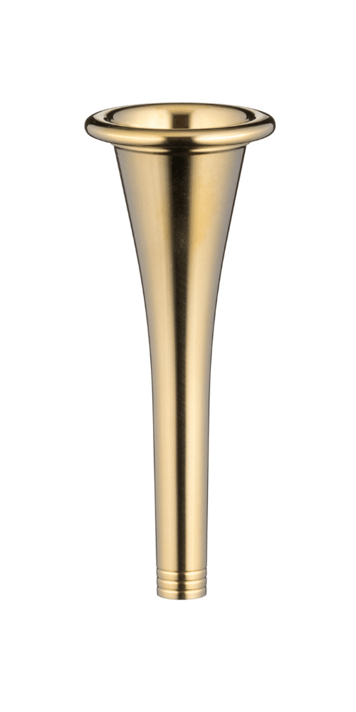 With V-shaped cup, well suited for medium and high register; round and centered sound; popular baroque horn mouthpiece